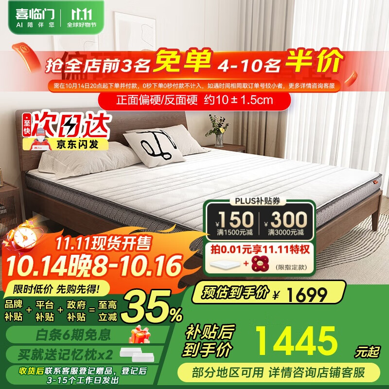 喜临门2cm进口乳胶薄垫子 黄麻 青少年/老人床垫air艾尔 1.8x2米偏硬