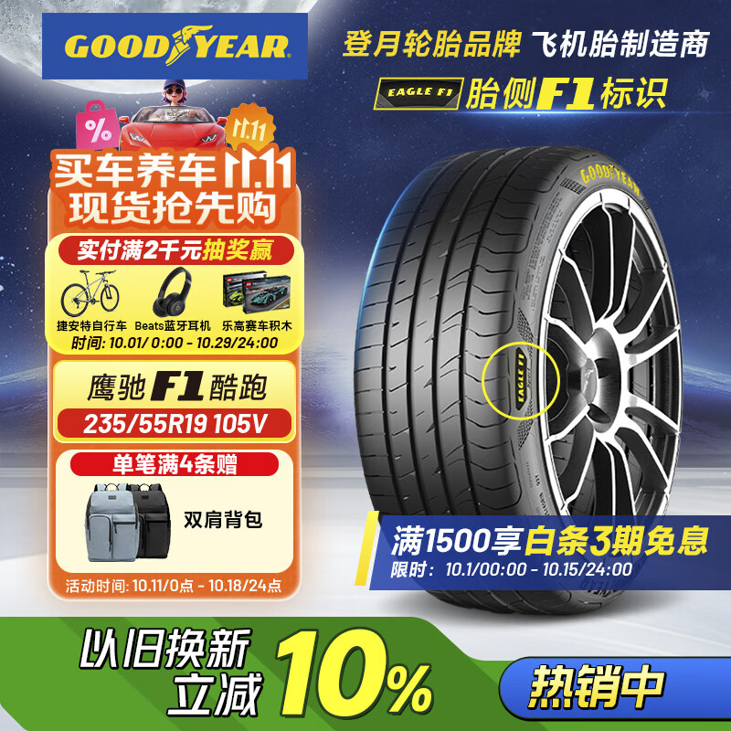 固特异(Goodyear)汽车轮胎235/55R19 105V EF1 SPORT鹰驰F1酷跑 适配揽胜极光/哈弗