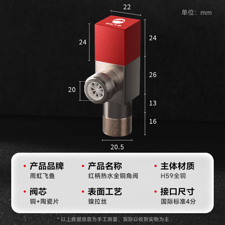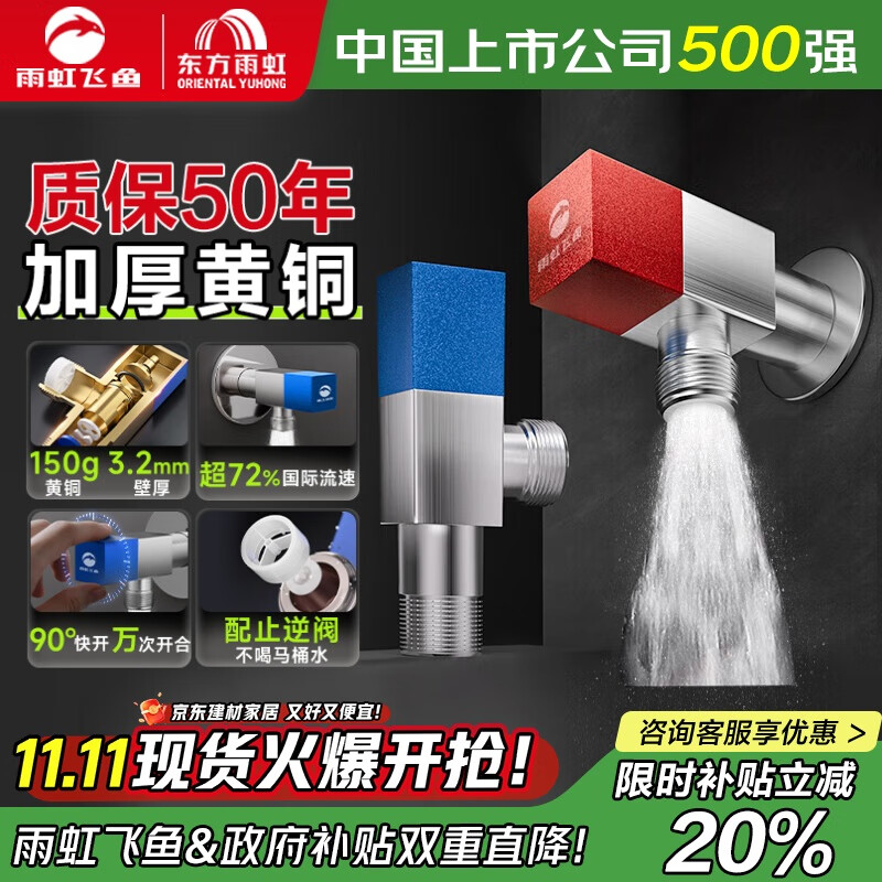 雨虹飞鱼东方雨虹国标H59加厚黄铜角阀陶瓷阀芯防爆1冷+1热套装