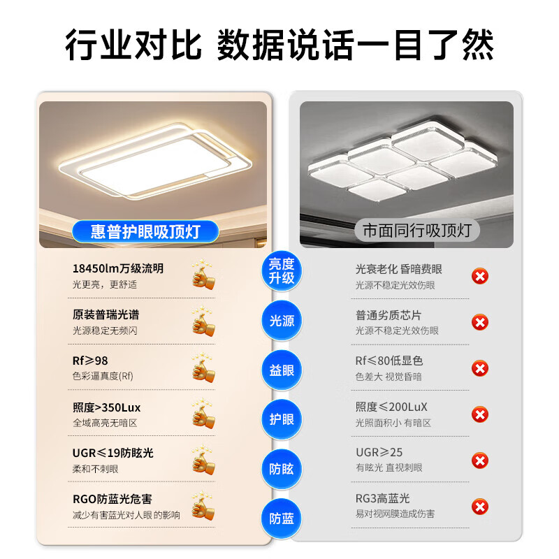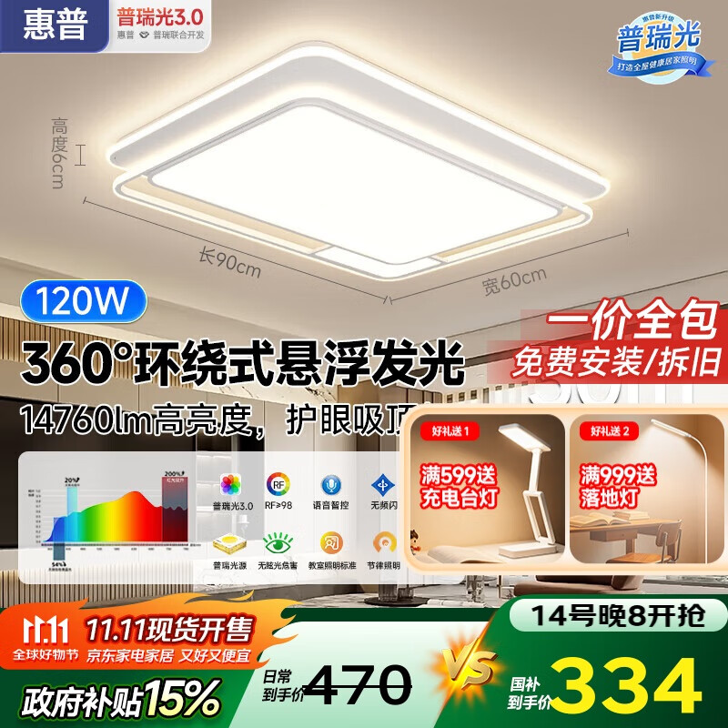 惠普吸顶灯客厅大灯普瑞护眼led智能APP现代中山灯具全屋套餐包安装