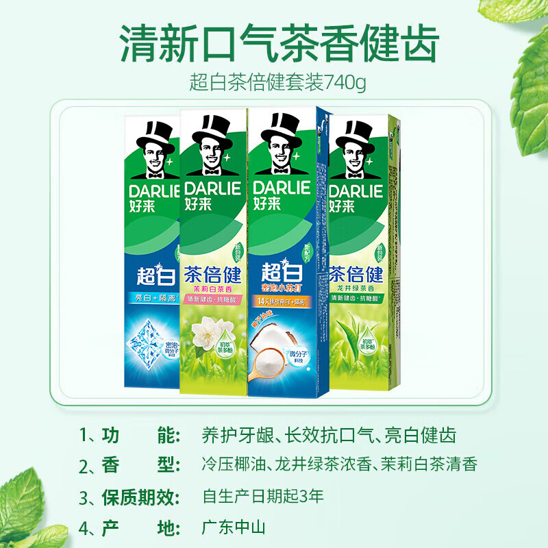 好来(原黑人)超白小苏打茶倍健清新口气洁齿亮齿焕白牙膏 4支740g