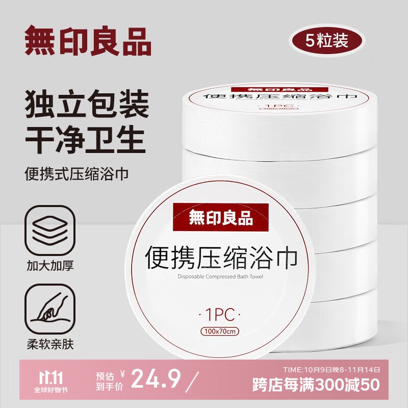无印良品一次性浴巾5条旅行单独包装压缩浴巾加厚擦脸旅游酒店洗澡浴巾