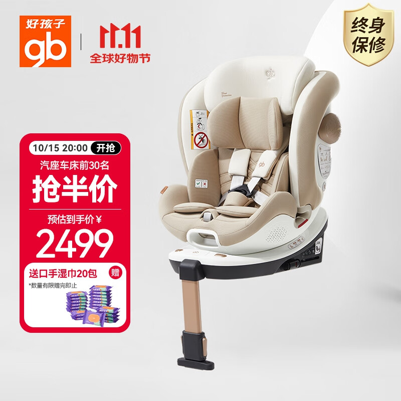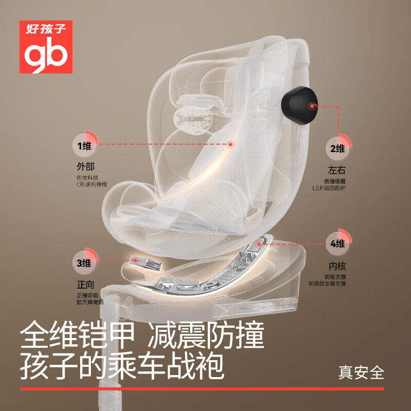 好孩子(gb)安全舱1号S婴儿8系高速儿童360旋转汽车安全座椅0-7岁 奶昔白