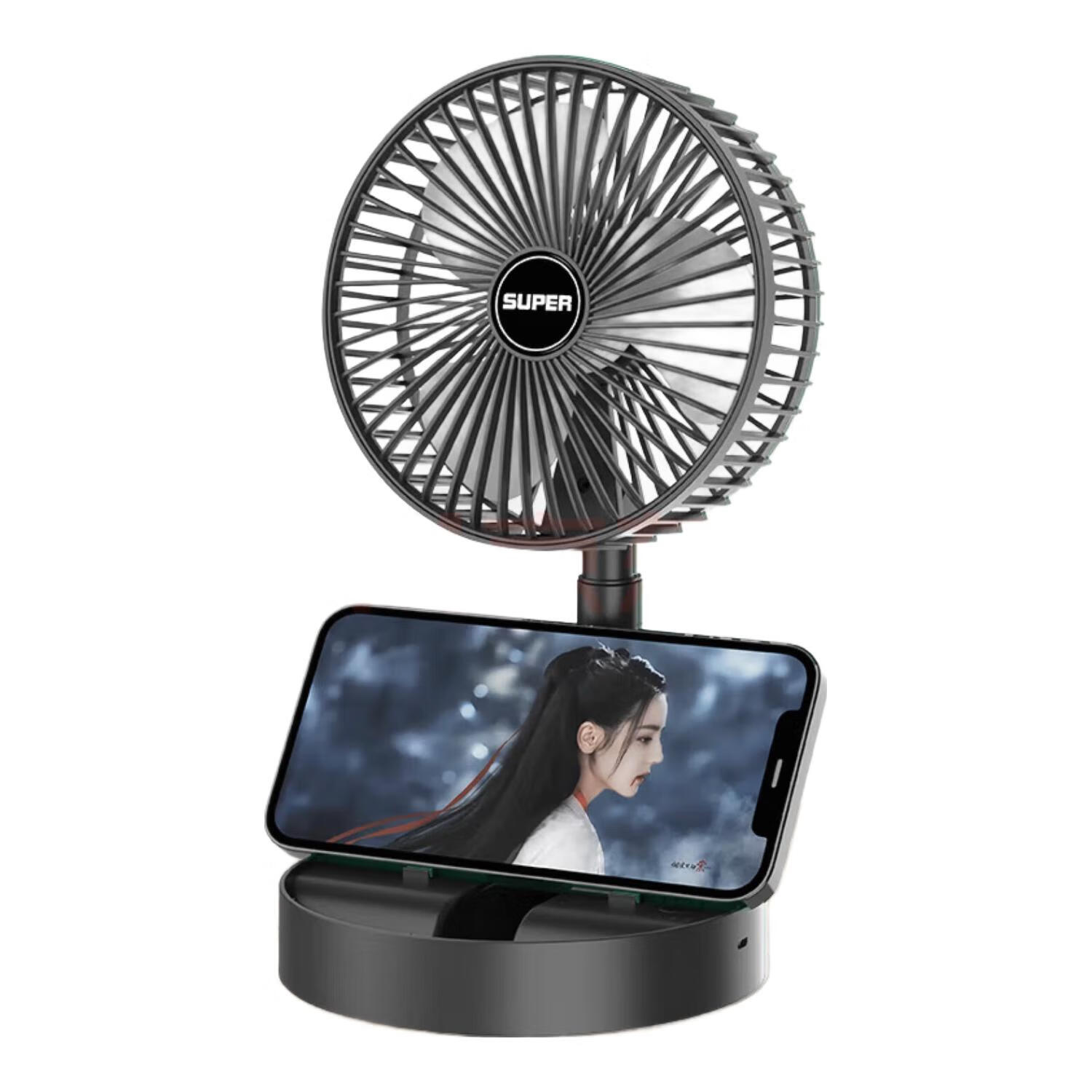 电风扇家用桌面风扇新款折叠伸缩台扇USB小风扇便携学生宿舍制冷轻音风扇 黑色升级版大风力充电款