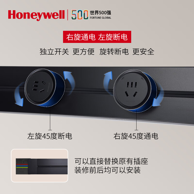霍尼韦尔(Honeywell)A8轨道插座明装 可移动墙壁插座免打孔壁挂式 滑动轨道排插黑75cm