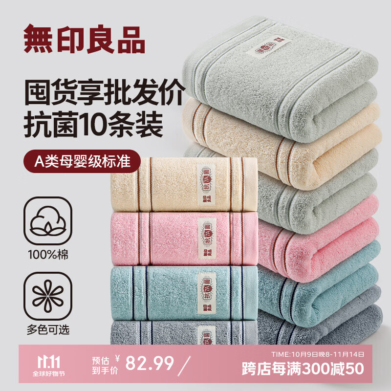 无印良品毛巾10条装抗菌新疆棉男士100%纯棉毛巾不易掉毛柔软亲肤