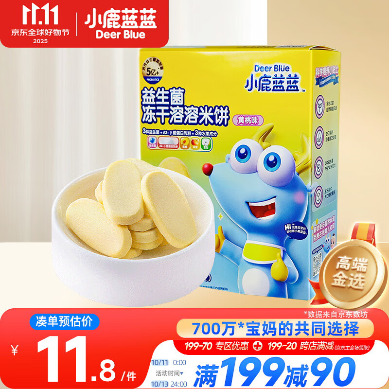 小鹿蓝蓝益生菌冻干溶溶米饼黄桃味 宝宝儿童零食 冻干工艺 吸口水20g