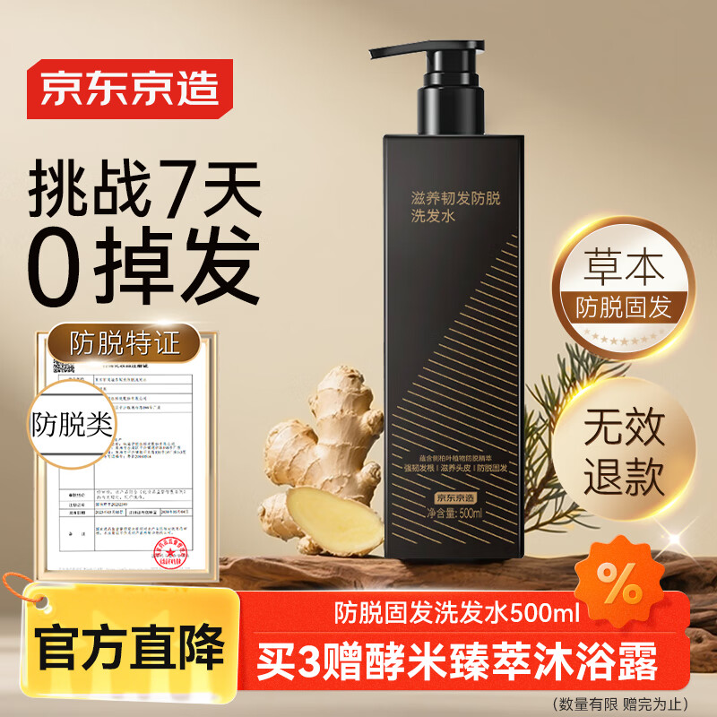 京东京造防脱洗发水生姜侧柏叶固发养发男女士去油屑止痒蓬松洗头膏露金榜