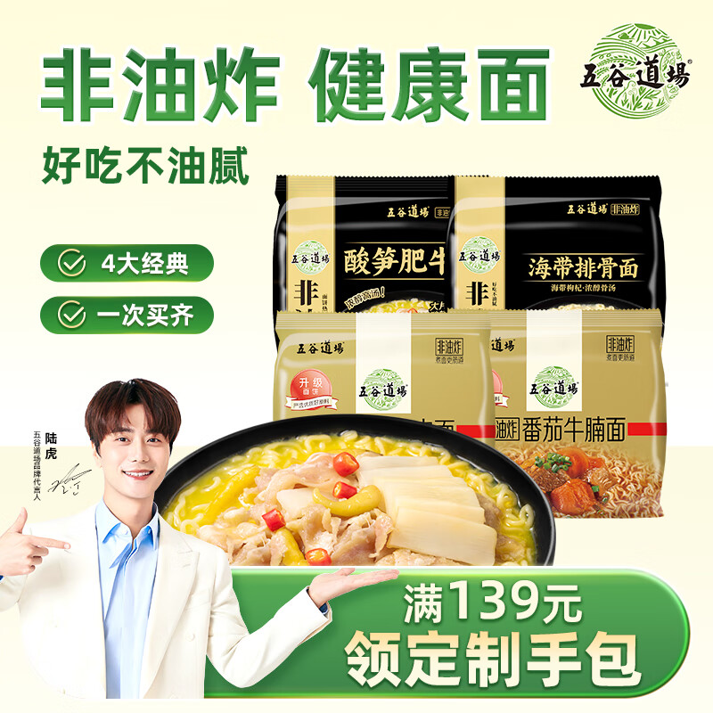 五谷道場非油炸四大金刚20袋4种口味组合方便面2200g整箱早餐泡面速食国货
