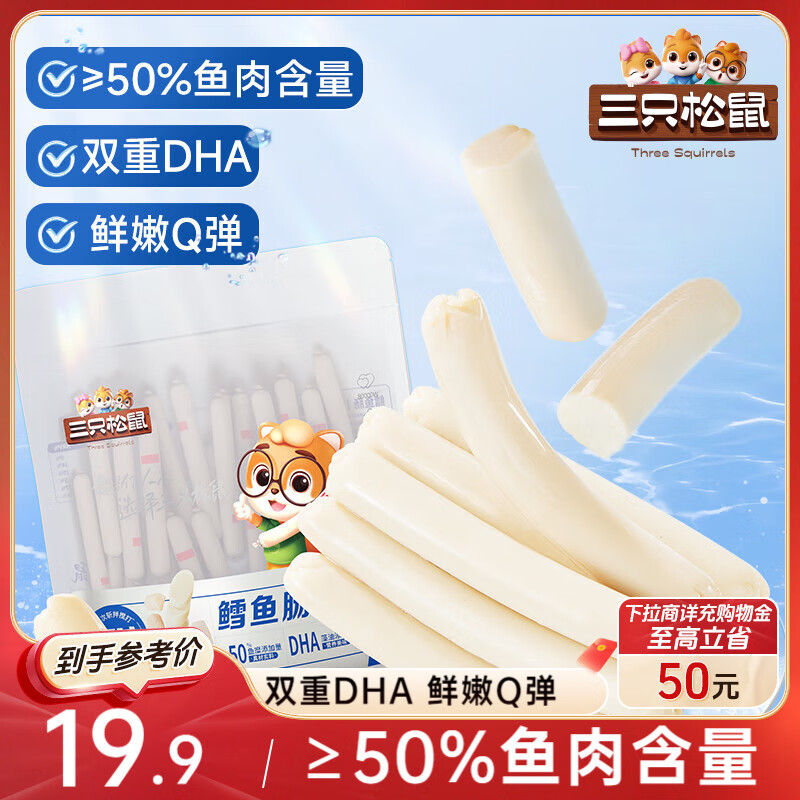三只松鼠鳕鱼肠原味640g约80根 营养高蛋白解馋休闲即食鱼肠儿童