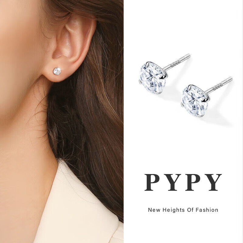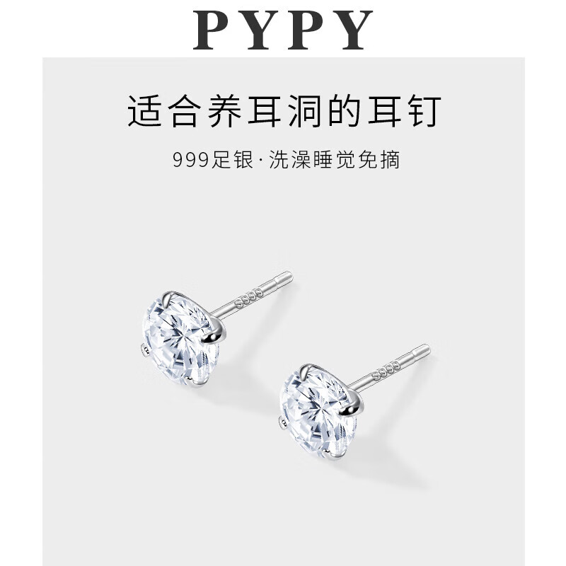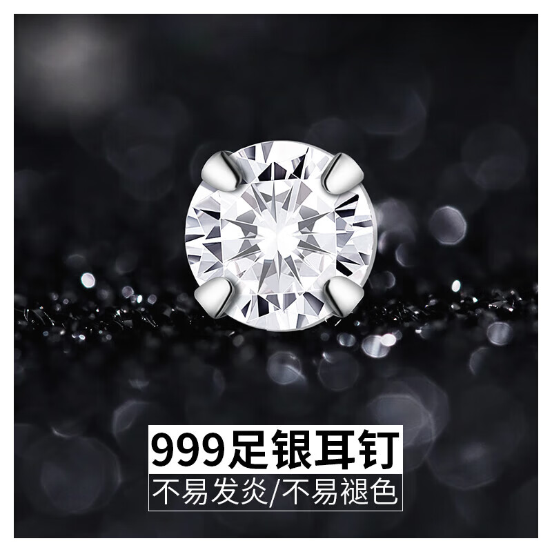 999纯银锆石耳钉高级感耳骨钉养耳洞洗睡免摘银耳饰防敏防炎耳环 3mm纯银锆石耳钉一对【999纯银】