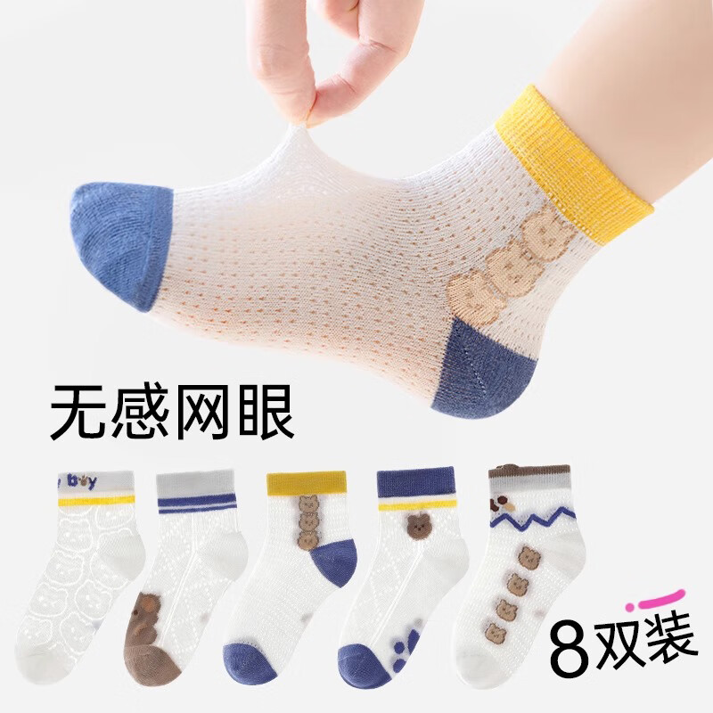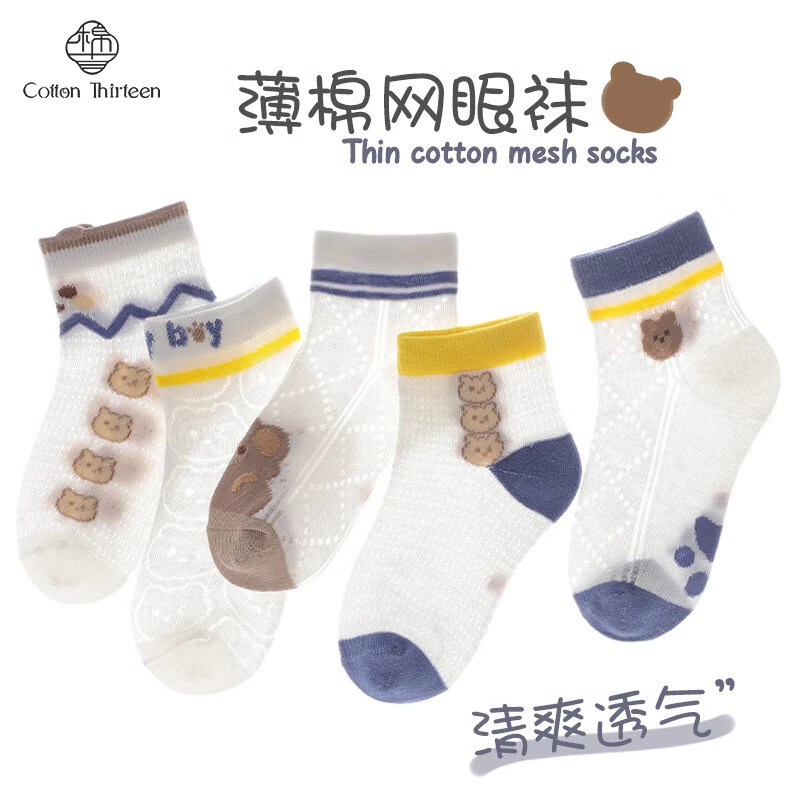 棉十三袜子男童儿童中筒袜新疆棉网眼儿童袜夏季薄款网眼青少年大童袜tt