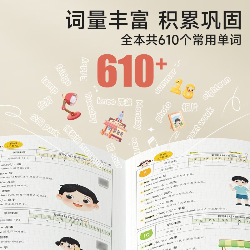 时光学小学生每日5个英语必背单词艾宾浩斯记忆法必备词汇速记1-6年级全国通用记背神器
