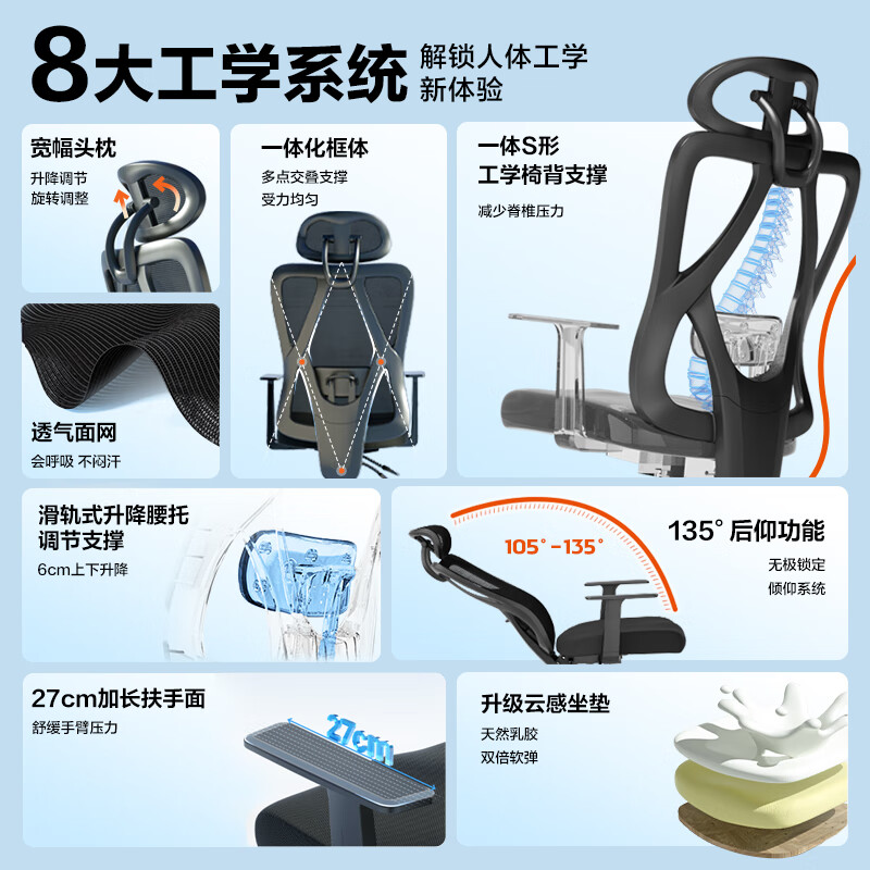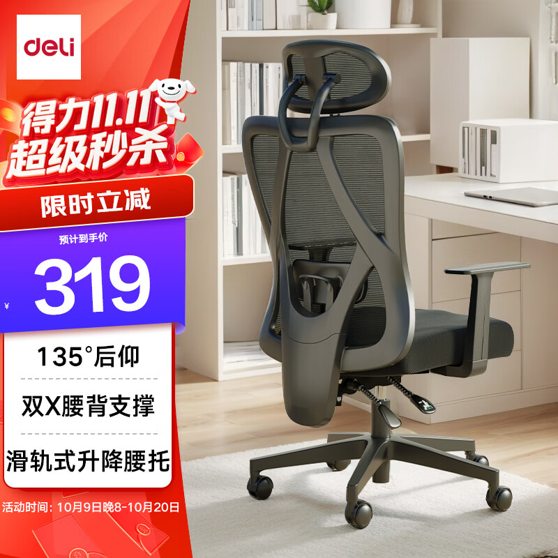 得力(deli)KF220人体工学椅 办公椅电脑椅子带头枕 宿舍家用电竞椅 悦享版