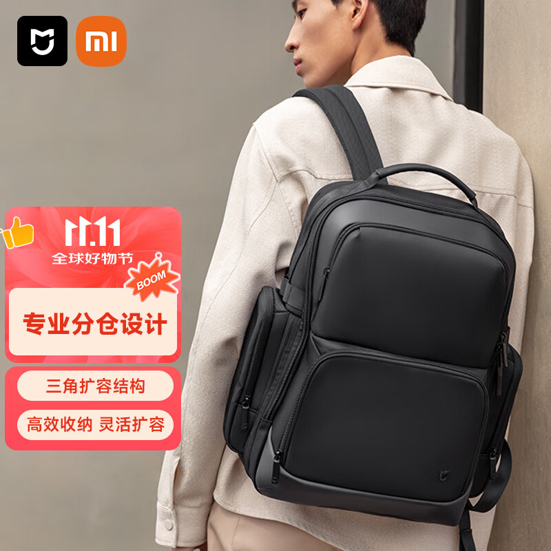 米家小米电脑包男士双肩包商务大容量背包笔记本通勤包女书包黑色
