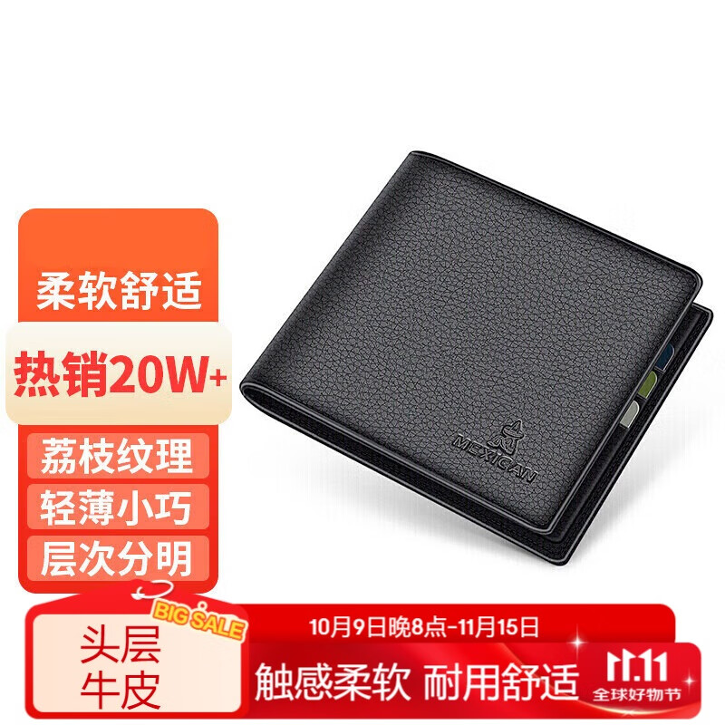 稻草人男士钱包短款商务头层牛皮横款两折票夹多卡位钱夹生日礼物