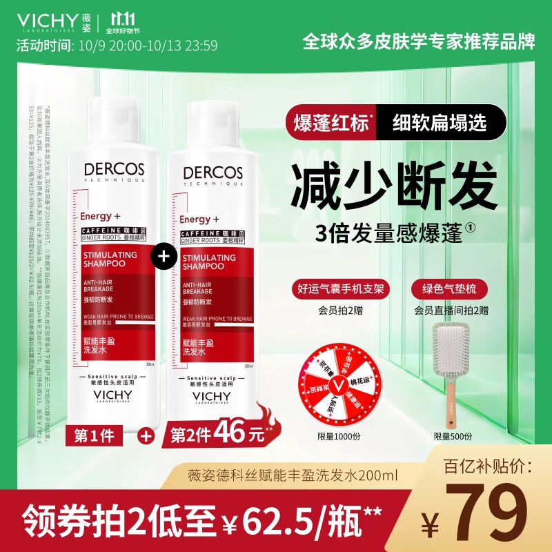 薇姿(VICHY)爆蓬红标洗发水丰盈蓬松无硅油生姜洗发水 强韧发根改善细软塌