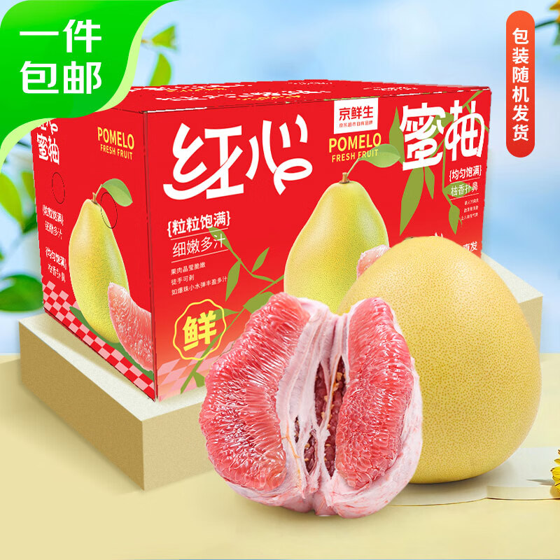 京鲜生 福建琯溪红心蜜柚2粒 净重4-4.5斤 水果礼盒 源头直发包邮
