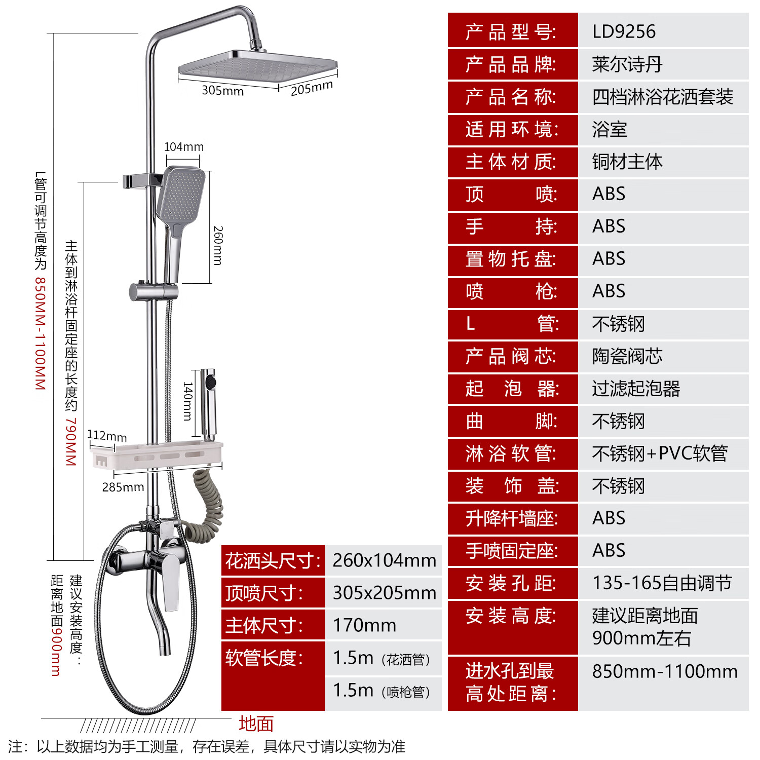 莱尔诗丹淋浴花洒套装 四功能喷枪淋浴器全铜主体龙头增压花洒全套LD9256