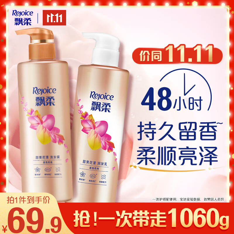 飘柔香氛洗发水男女士甜美花漾洗护套装530g+530g持久柔顺留香