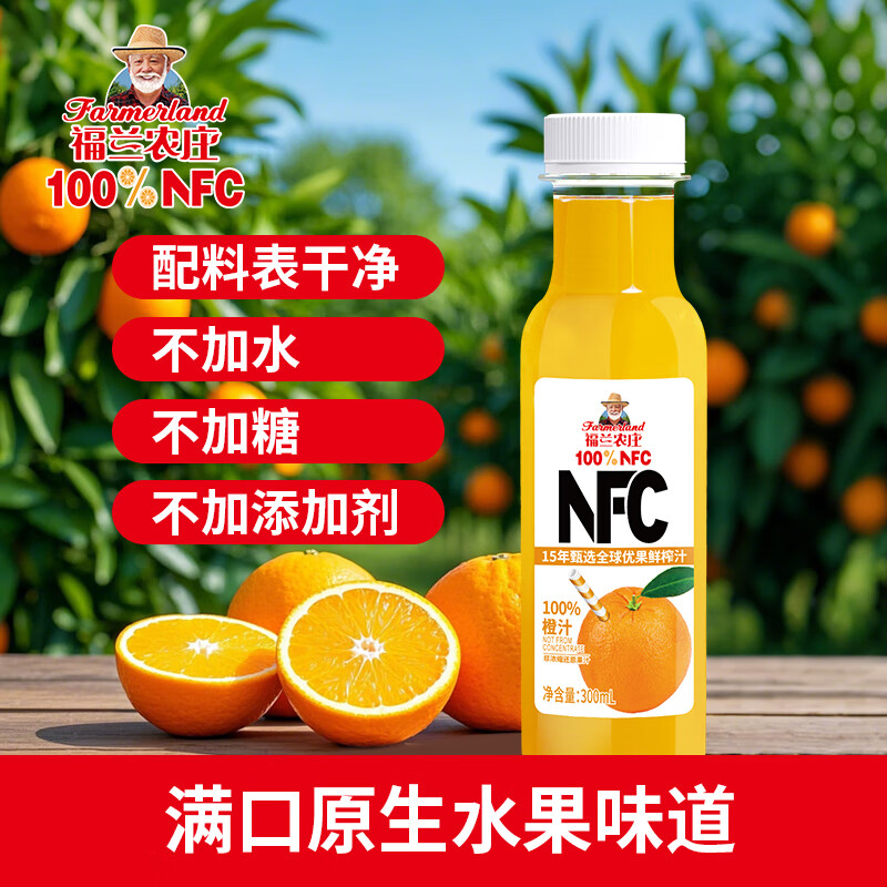 福兰农庄NFC100%橙汁纯鲜榨果汁饮料300ml*6瓶整箱装0添加剂0脂肪