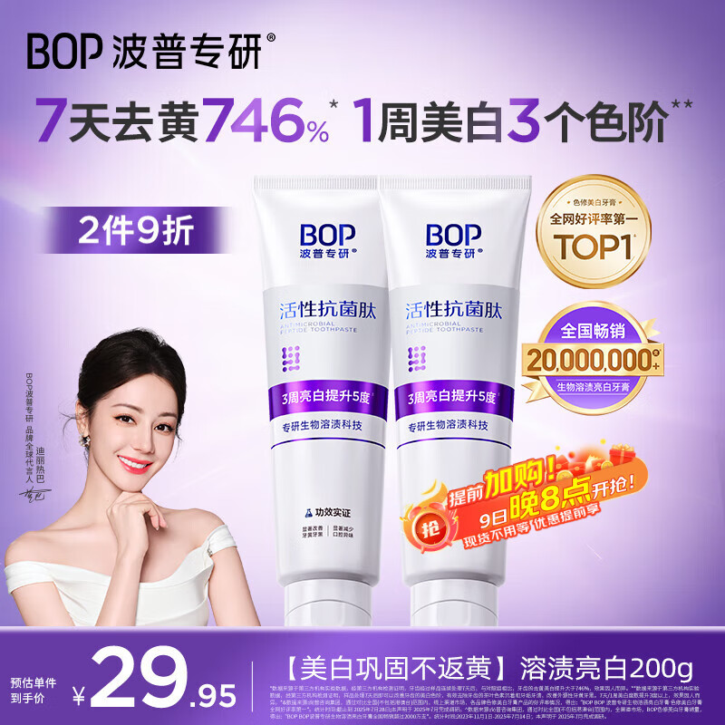 波普专研(bop)迪丽热巴同款色修美白牙膏紫色亮白牙齿去牙渍溶渍2支