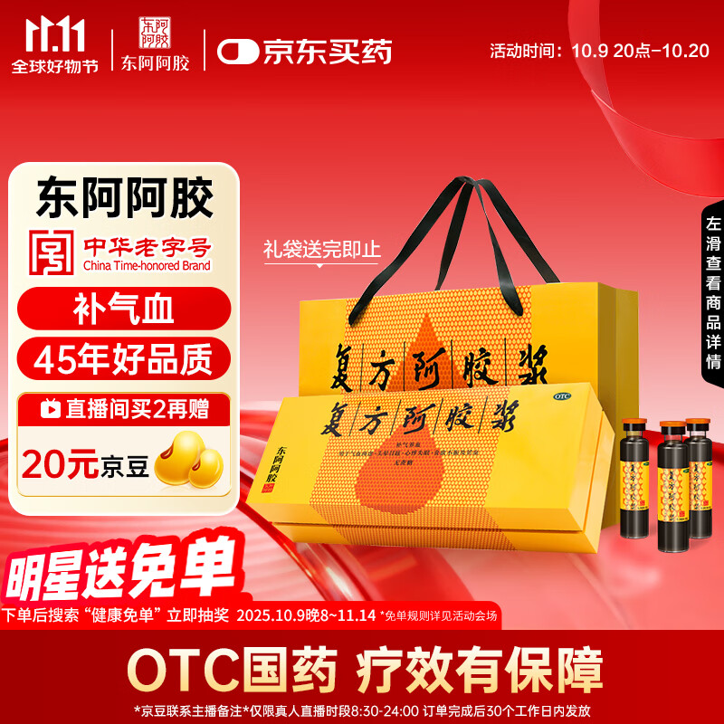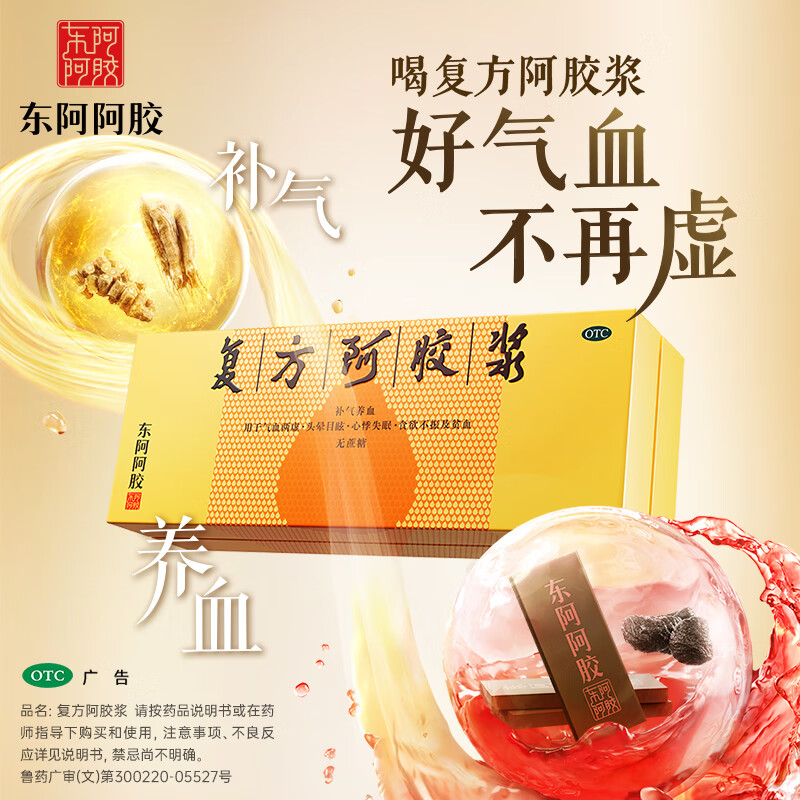 东阿阿胶复方阿胶浆 20ml*48支 补气养血 提高睡眠 阿胶口服液 头晕目眩失眠贫血红参熟地黄