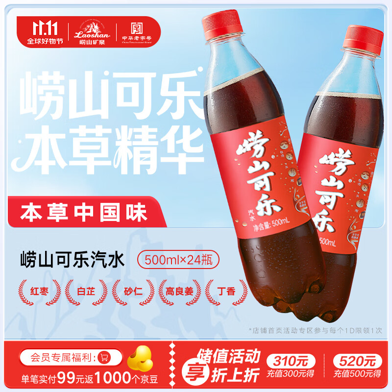 崂山【任嘉伦推荐款】中华老字号 国货可乐汽水 碳酸饮料 500ml*24瓶
