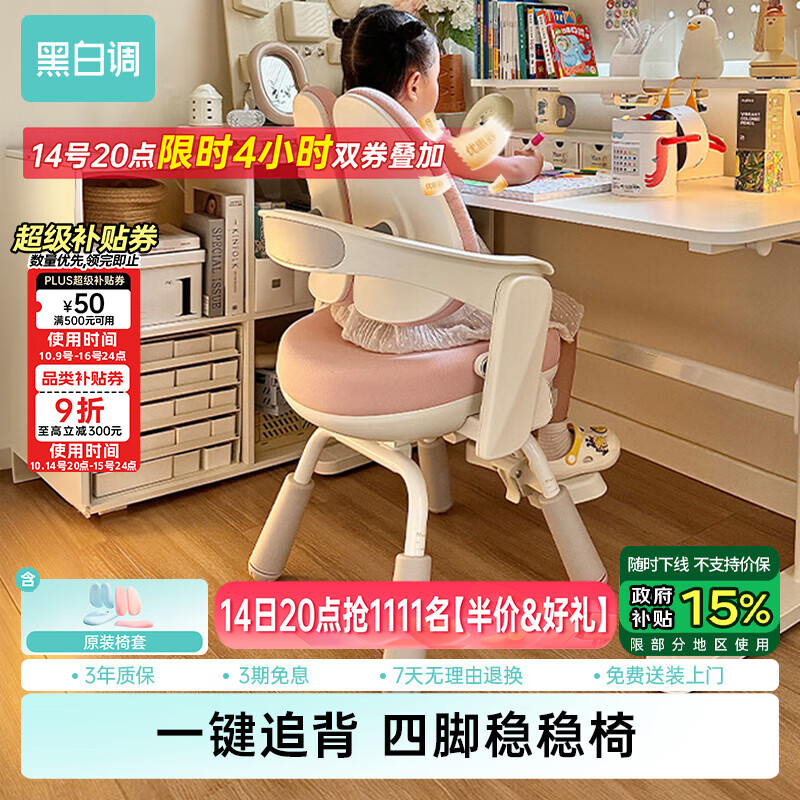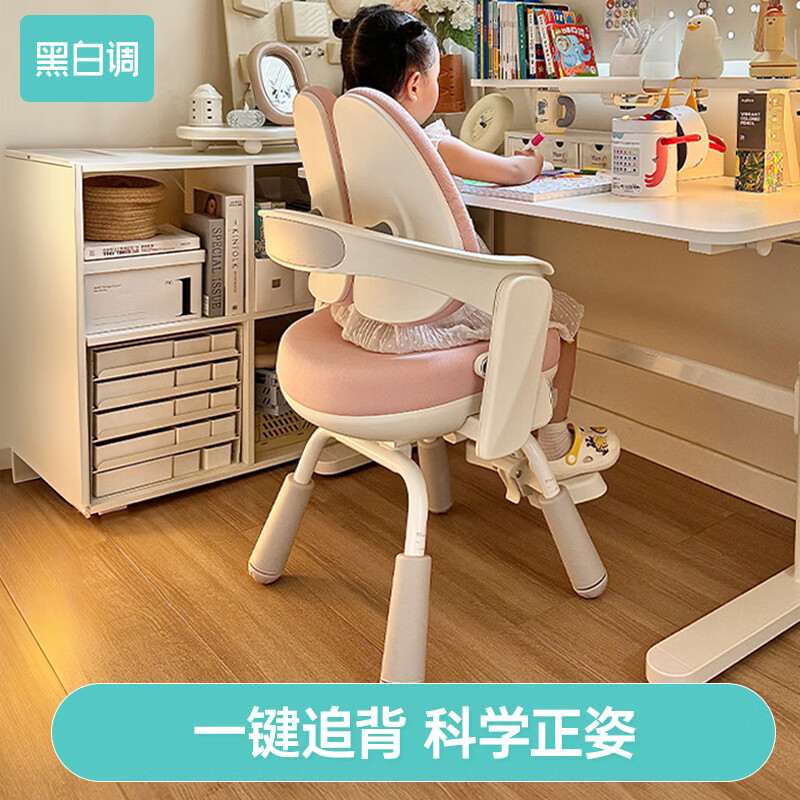 黑白调儿童Y2儿童学习椅写字椅儿童座椅可调节升降【四脚稳定 无极追背】
