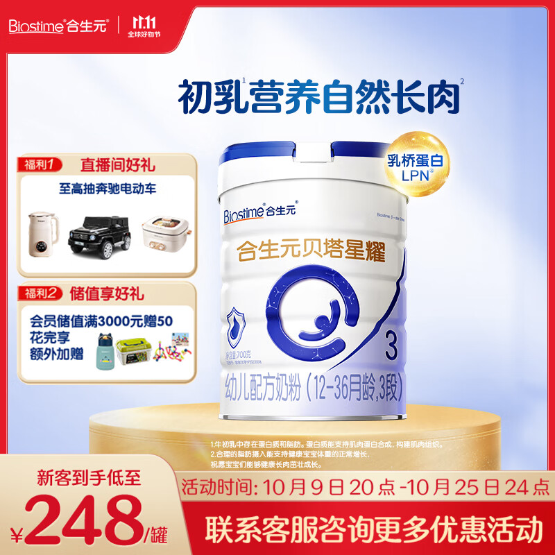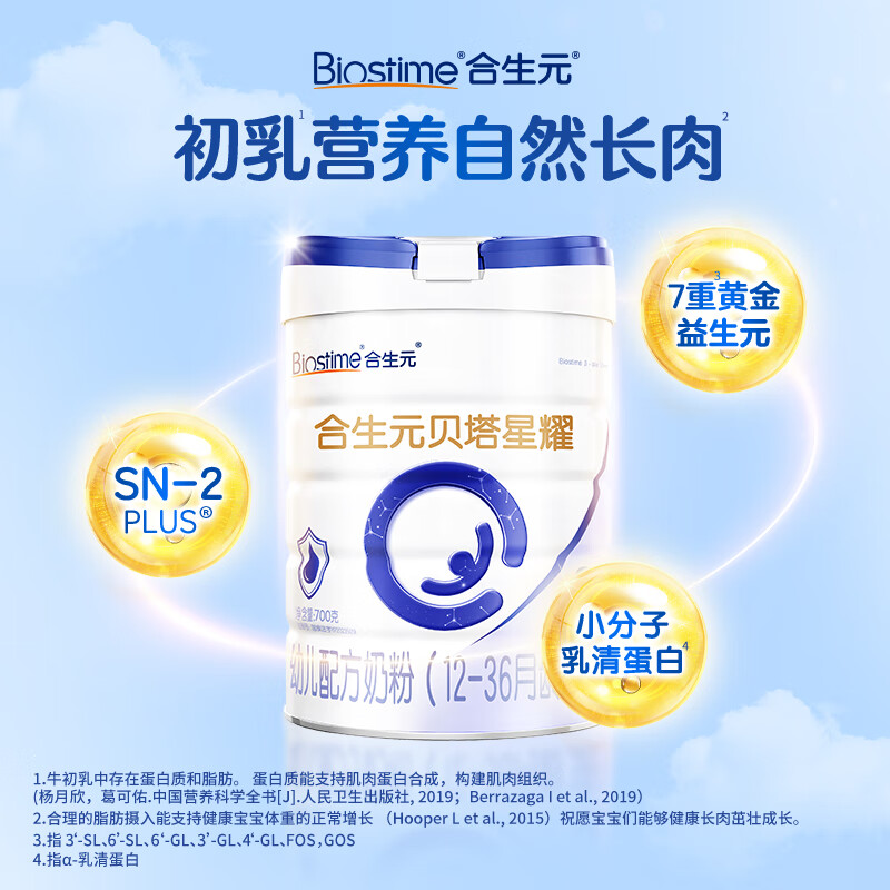 合生元(BIOSTIME)贝塔星耀 幼儿配方奶粉 好吸收 3段(12-36个月) 700g 新国标