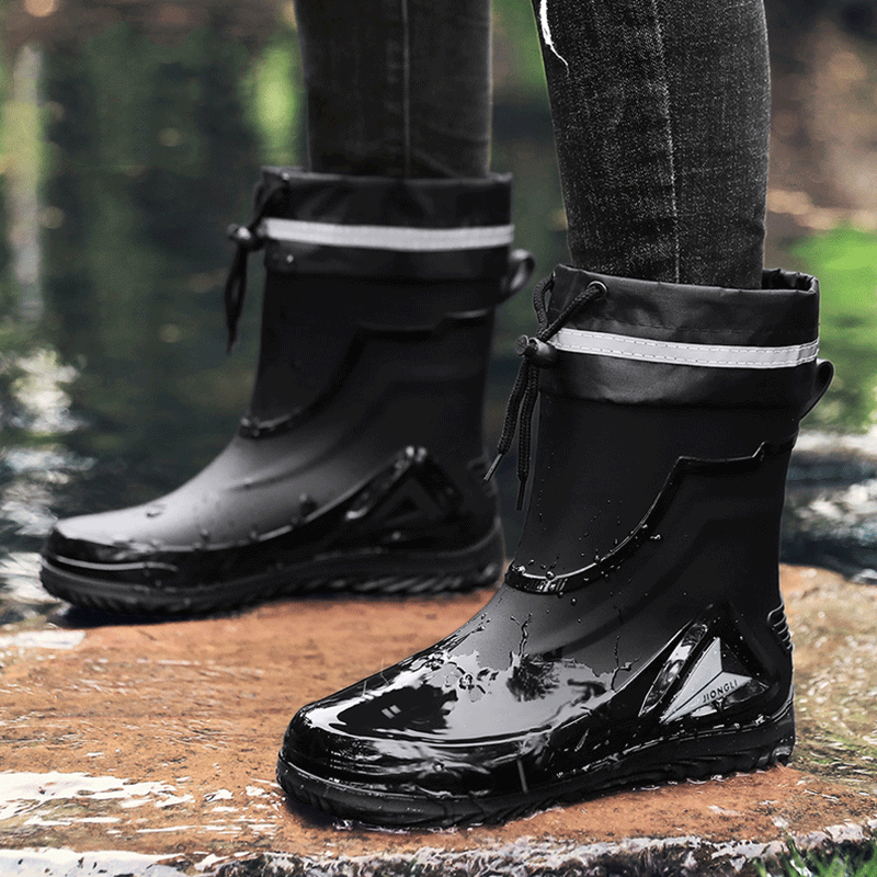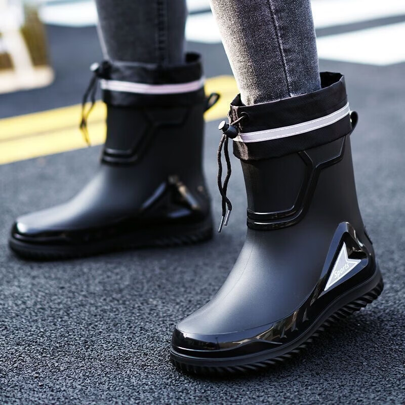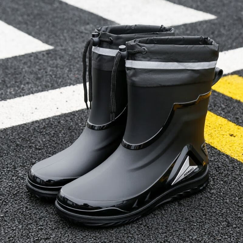 德系高档雨鞋男新款收口防雨防水鞋中筒防滑雨靴水靴户外钓鱼雨靴 黑色加防水口不可拆 42
