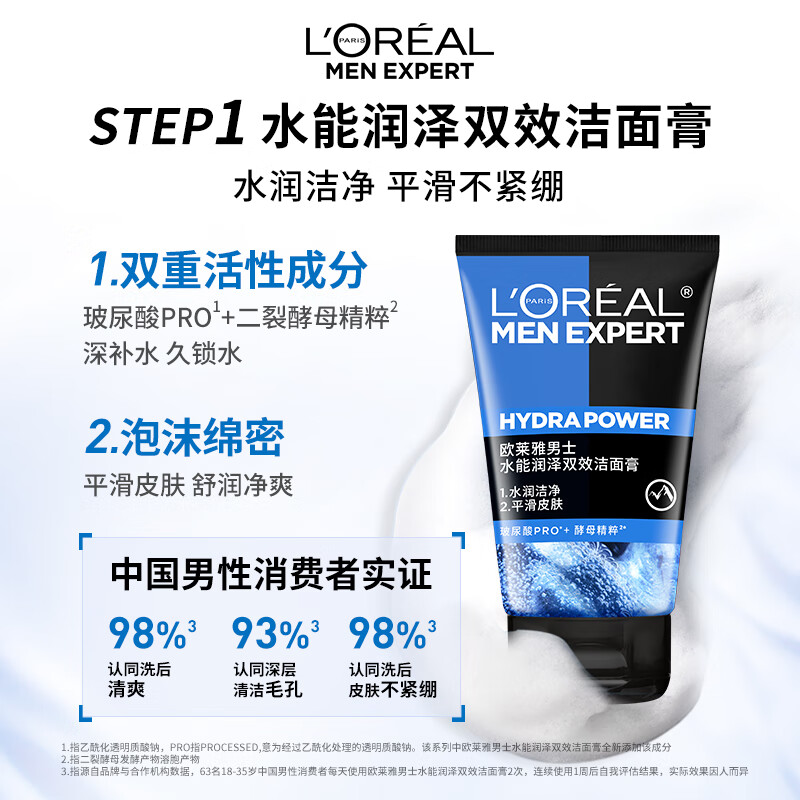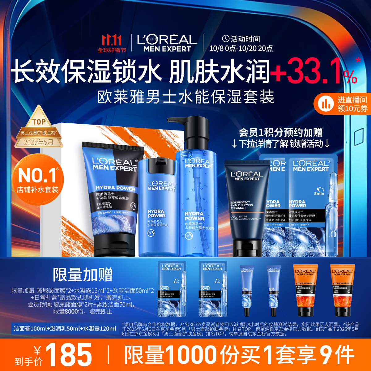 欧莱雅男士水能保湿洗面奶水乳三件套装补水护肤品实用生日礼物送男朋友