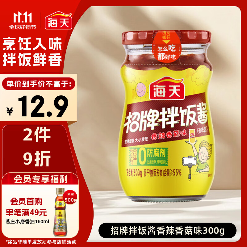海天 拌饭酱 辣椒酱 拌面酱 香辣香菇酱300g 拌饭拌面调味酱