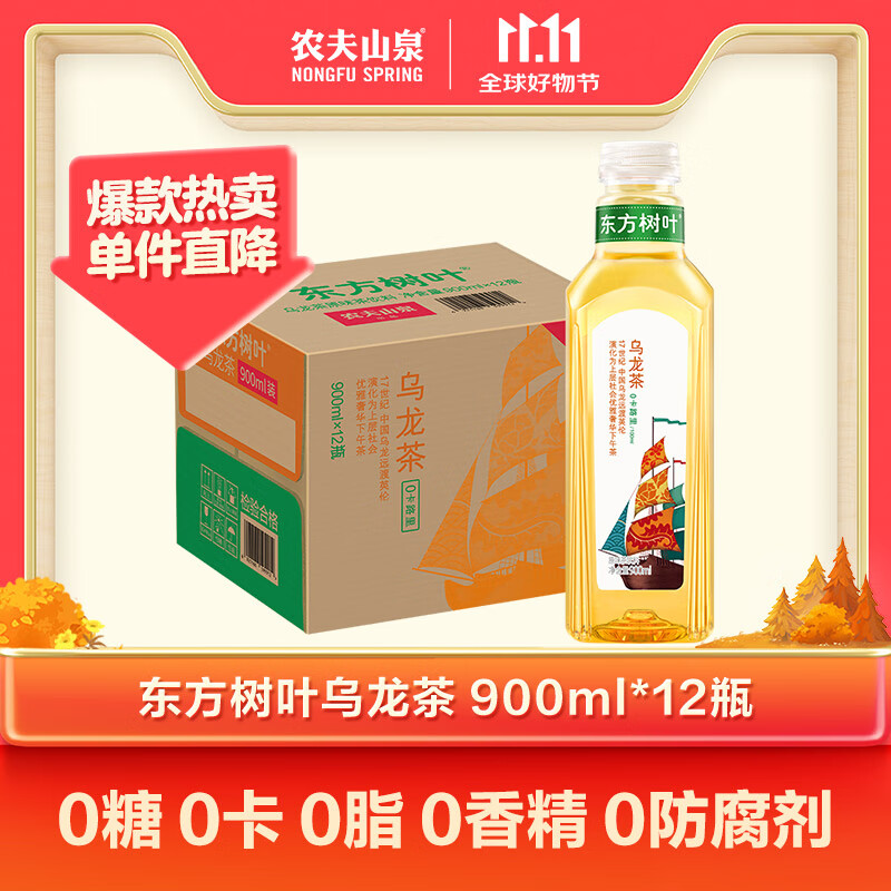 农夫山泉东方树叶乌龙茶900ml*12瓶无糖茶饮料0糖0脂0卡大瓶整箱解渴饮品