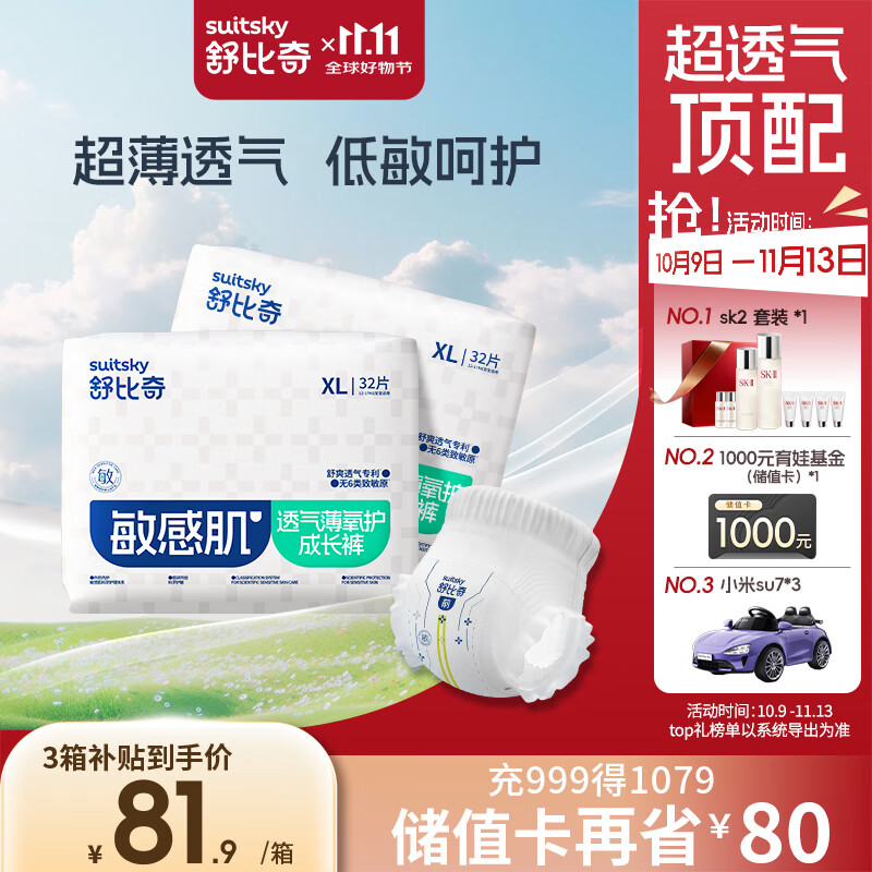舒比奇(Suitsky)透气薄拉拉裤XL码64片(12-17kg)尿不湿小内裤超薄透气干爽成长裤