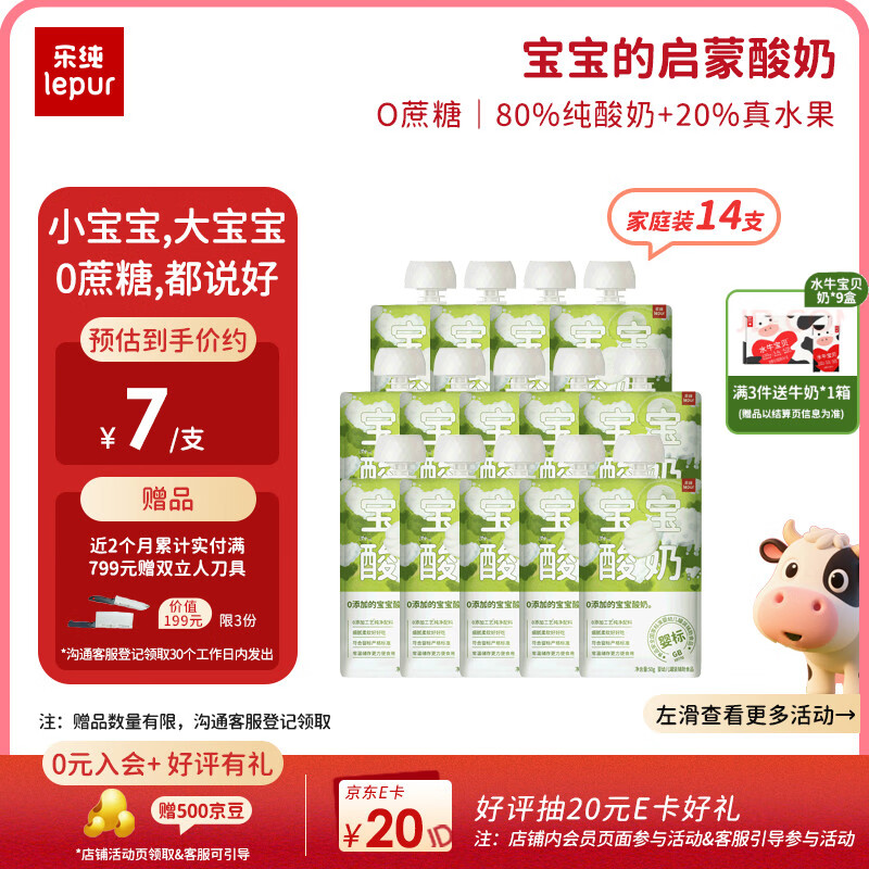 乐纯婴标宝宝酸奶原味50g*14支 常温辅食0添加0蔗糖儿童零食(6个月+)