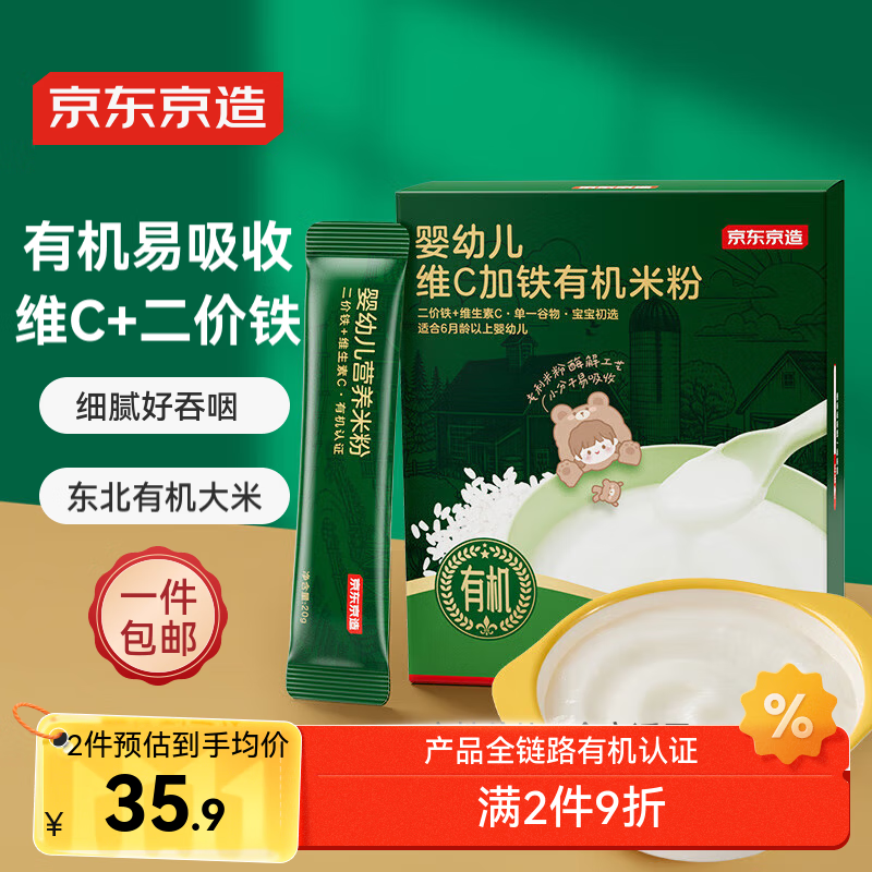 京东京造 婴儿有机原味高铁米粉240g婴儿国标认证 宝宝辅食米糊米粉6个月