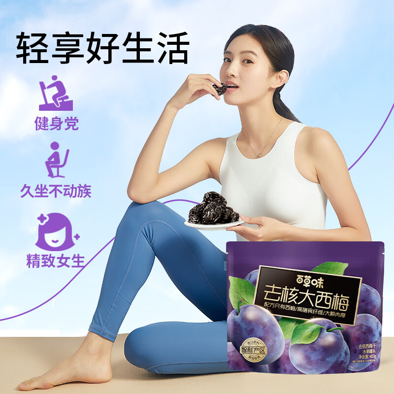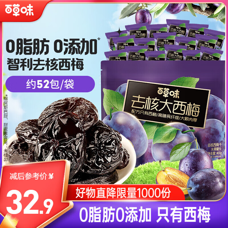 百草味去核大西梅400g无添加智利西梅干梅子蜜饯果干健康休闲零食孕妇