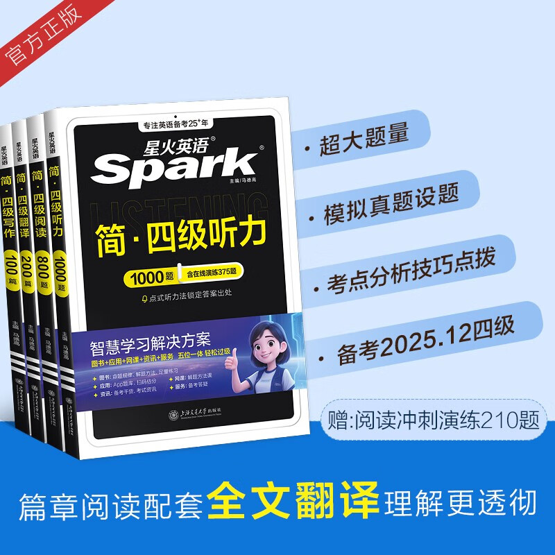 星火英语备考2025年12月大学英语CET4四级听力阅读翻译写作专项训练四本套装