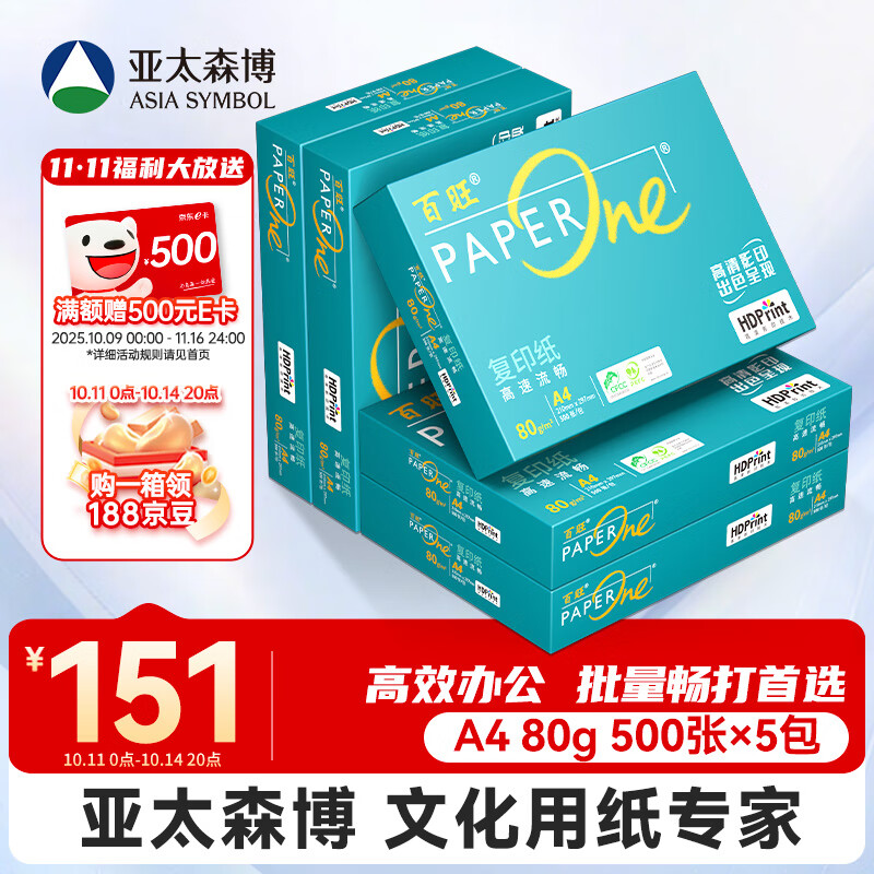 百旺中高档绿百旺 A4打印纸 80g500张*5包 复印纸 高清影印技术 碳足迹认证 2500张【专业造纸厂牌】