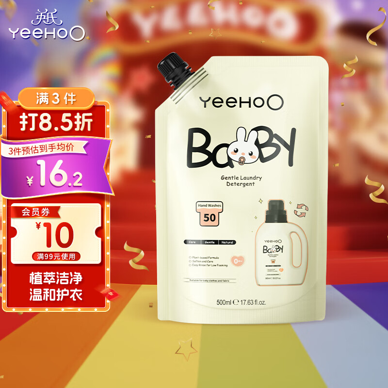 英氏婴儿洗衣液儿童洗衣液宝宝专用酵素去渍柔护洗衣液补充装500ml