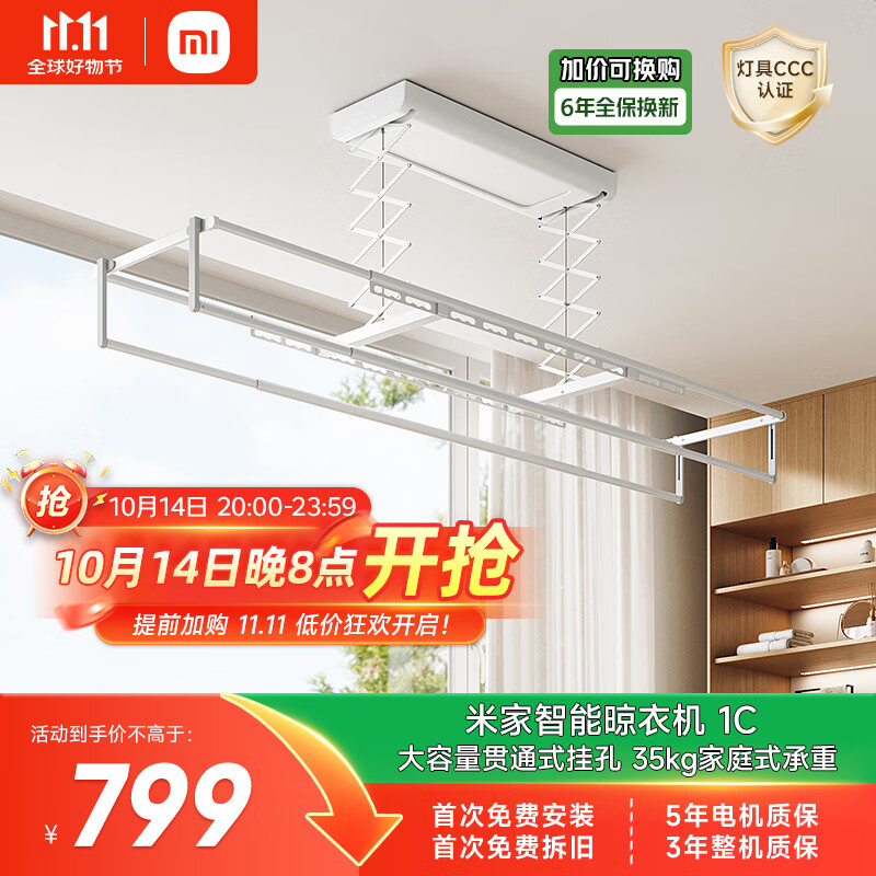 米家智能晾衣机1C 小米电动晾衣架无线遥控阳台升降晾衣杆小爱语音