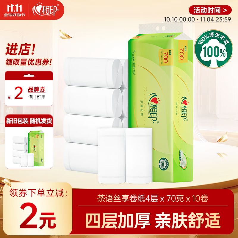 心相印无芯卷纸 丝享4层700克 柔厚亲肤 卫生纸 可冲散 原生木浆提装