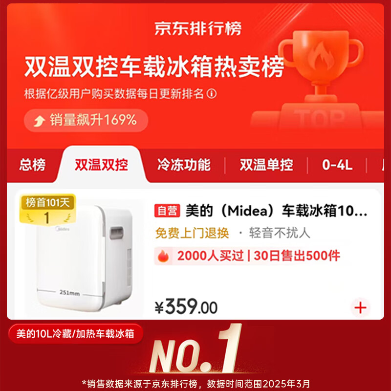 美的(Midea)车载电子冰箱10L车家两用迷你小型学生宿舍办公室储存冷藏加热箱