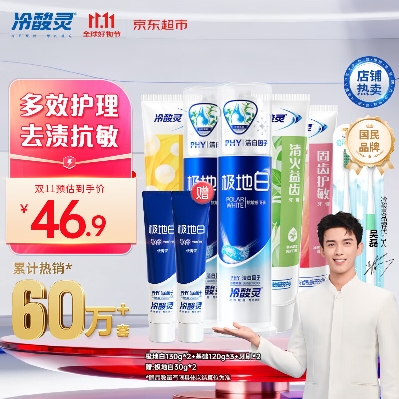 冷酸灵多效护理牙膏套装 抗敏美白 清新口气 5支装共620g【吴磊推荐】