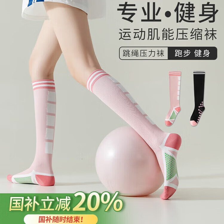 杜威克压力袜专业防滑肌能瑜伽小腿袜运动女跑步跳绳马拉松骑行 黑+白
