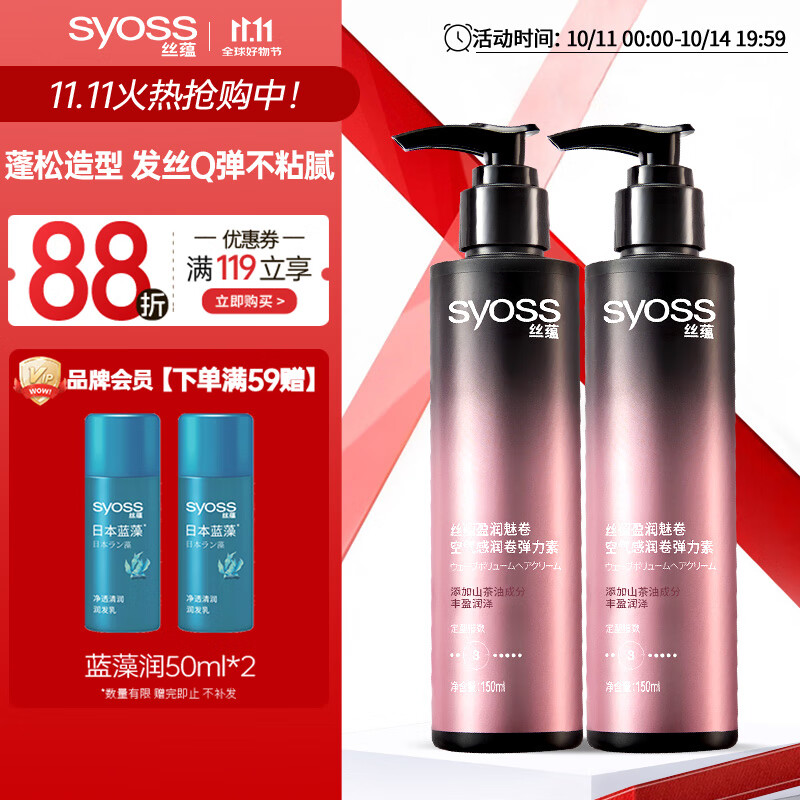 丝蕴(syoss)盈润魅卷弹力素乳液150ml*2 卷发保湿定型护卷防毛躁蓬松持久清爽