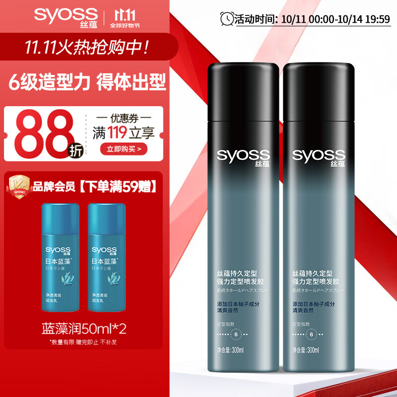 丝蕴持久定型强力定型喷发胶300ml*2 强力定型喷雾蓬松自然清爽快干