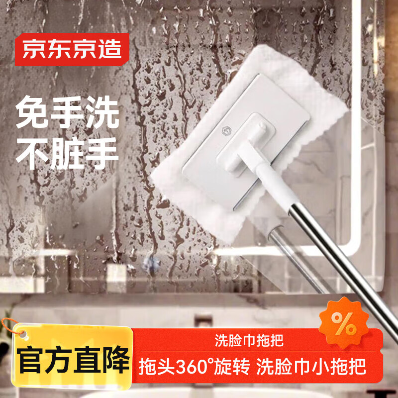 京东京造 迷你洗脸巾平板拖把16cm 夹布免手洗懒人家用拖地神器一拖净