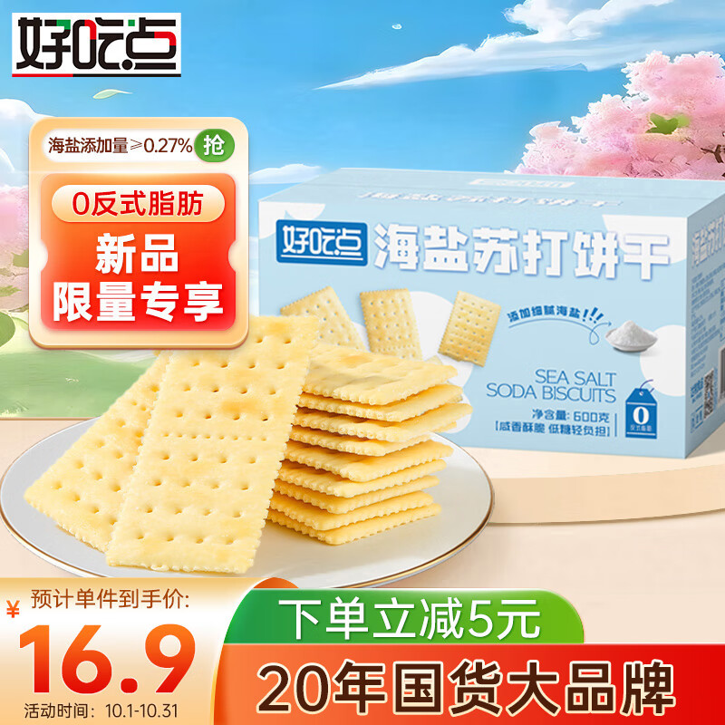 好吃点海盐苏打饼干600g休闲零食早餐营养食品 中秋节企业采购小零食